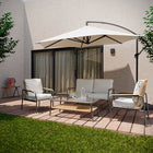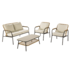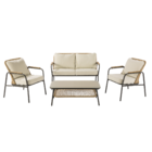 Versátil y acogedor, este conjunto de jardín consta de un sofá, sillones y una mesa de centro, y ofrece múltiples opciones de disposición para acomodar cómodamente a sus invitados. La combinación de elementos crea un espacio flexible y dinámico, ideal tanto para relajarse bajo el sol como para momentos de convivencia.