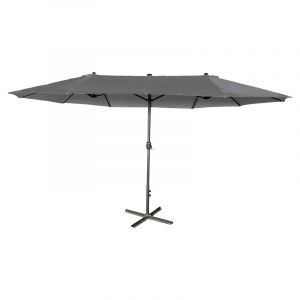 Sombrilla rectangular triple 250 x 450 x 270 cm gris oscuro. Amplíe su espacio habitable al aire libre con nuestra sombrilla triple. Perfecta para relajarse, disfrutar de comidas al aire libre o proteger sus muebles de jardín, esta sombrilla le ofrece la sombra y protección que necesita. El sistema de elevación de manivela facilita su uso, y su tejido resistente a la intemperie garantiza una larga durabilidad.